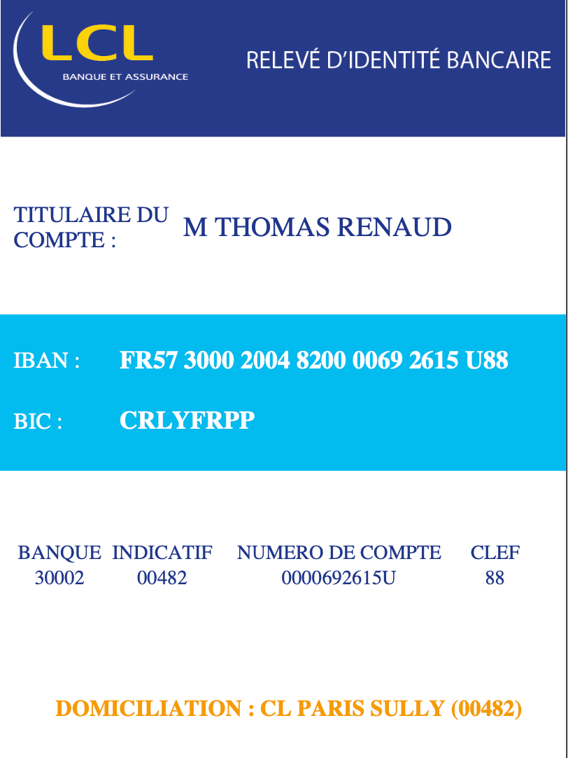 Sinon par virement bancaire :